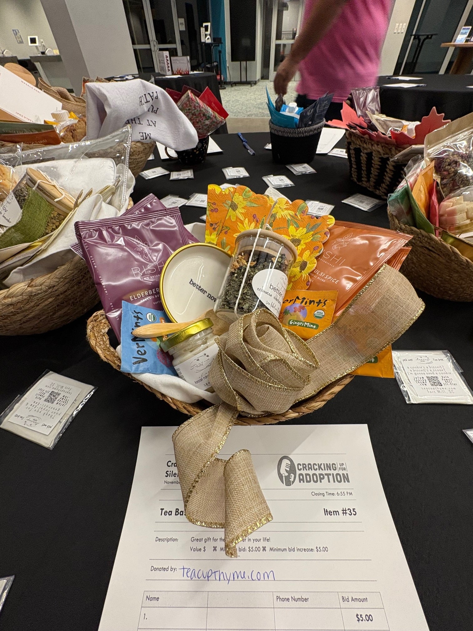 The baskets at this silent auction are a sneak peak of products in their earliest conception.